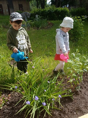 Также юные ботаники совершили экскурсию на цветник, где провели простейшие наблюдения за цветами и поучаствовали в уходе за цветами на клумбе.