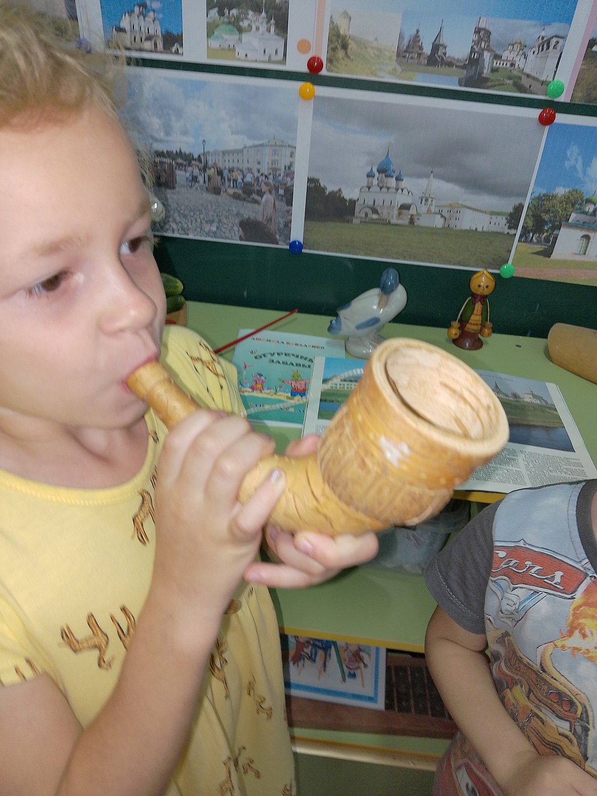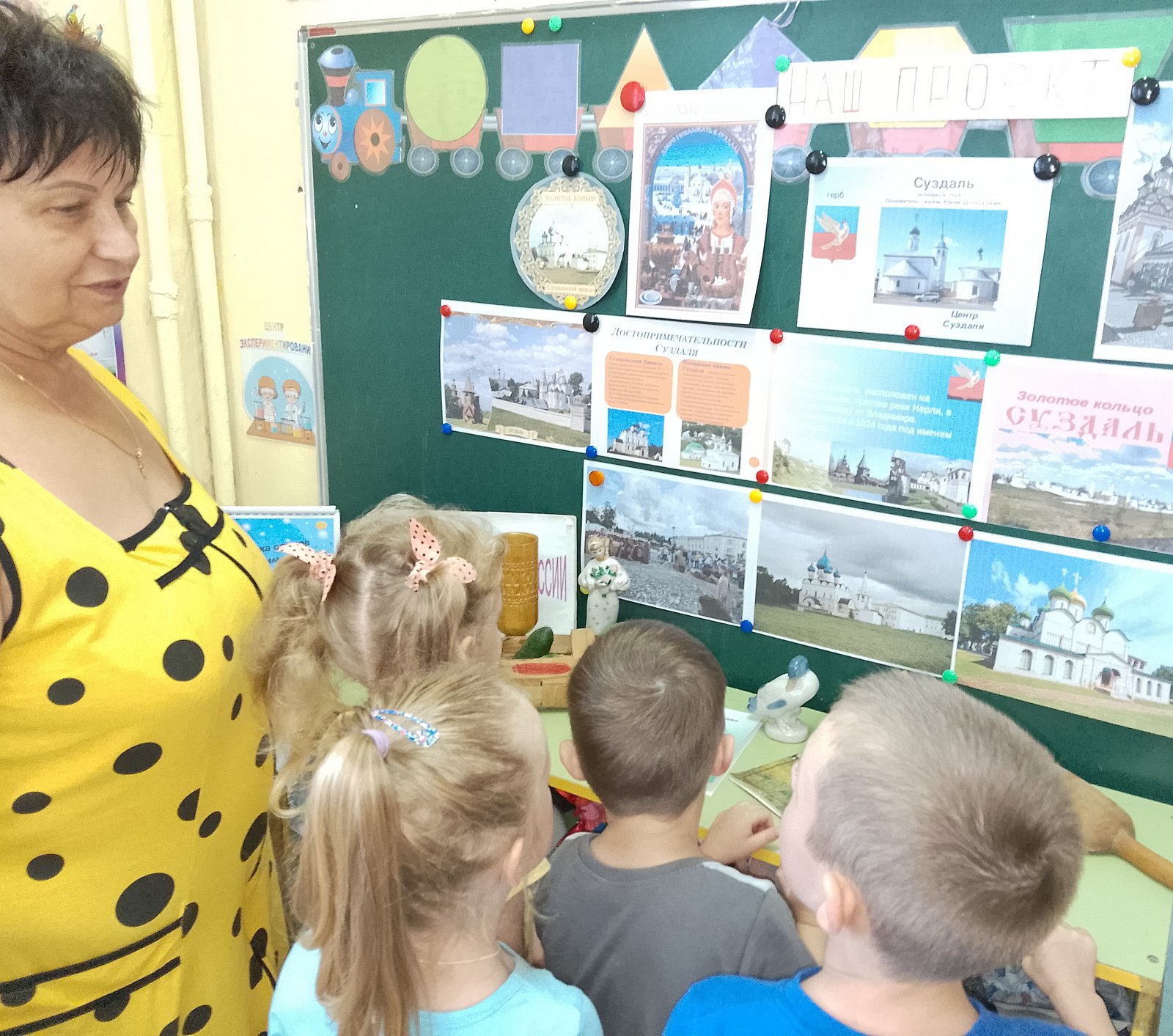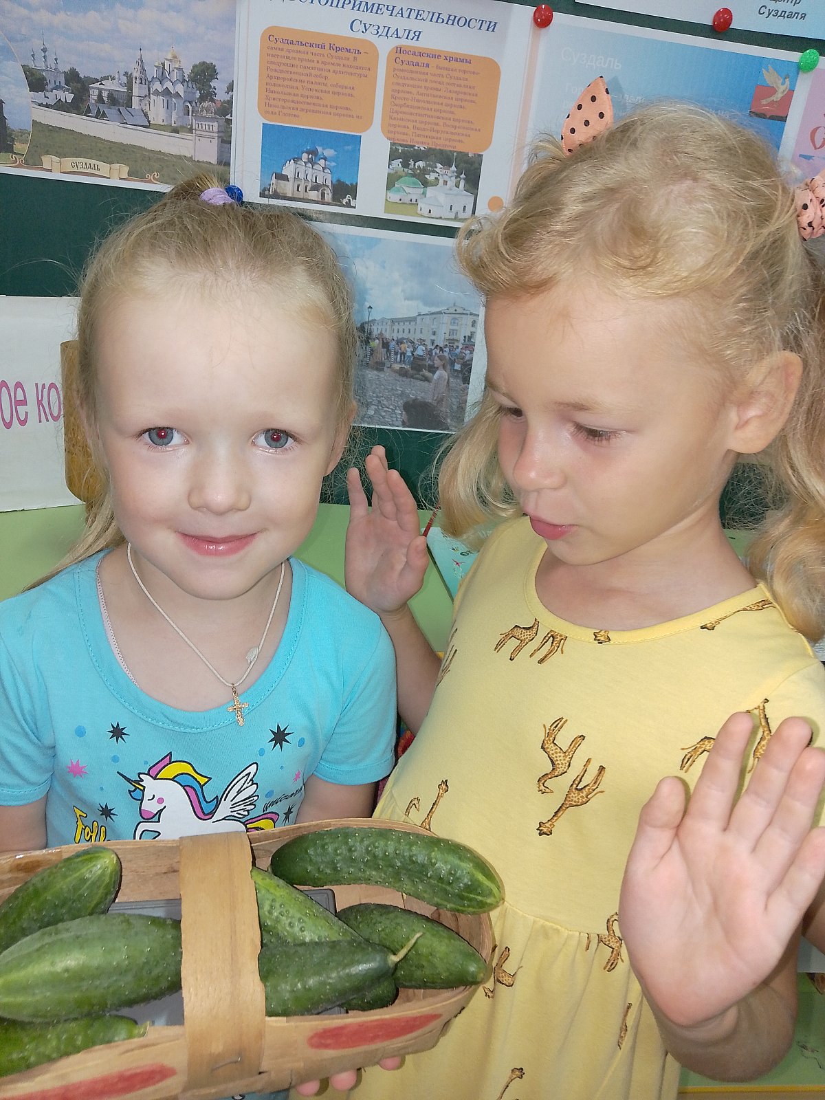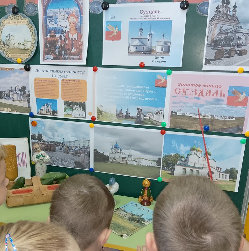К 1000-летию города Суздаля в группе «Ягодки», педагог Кудрявцева А.А., проходит познавательный проект- путешествие «Волшебный Суздаль». В ходе проекта ребята знакомятся с историей Суздаля, одного из жемчужин Золотого кольца России, совершили виртуальное путешествие по старинным улочкам древнерусского города, на которых когда-то проживали знаменитые суздальские жители, знакомятся с достопримечательностями. Рассмотрели фотографии праздника лаптя и огурца на Ильинском лугу, отведали знаменитых суздальских огурцов!