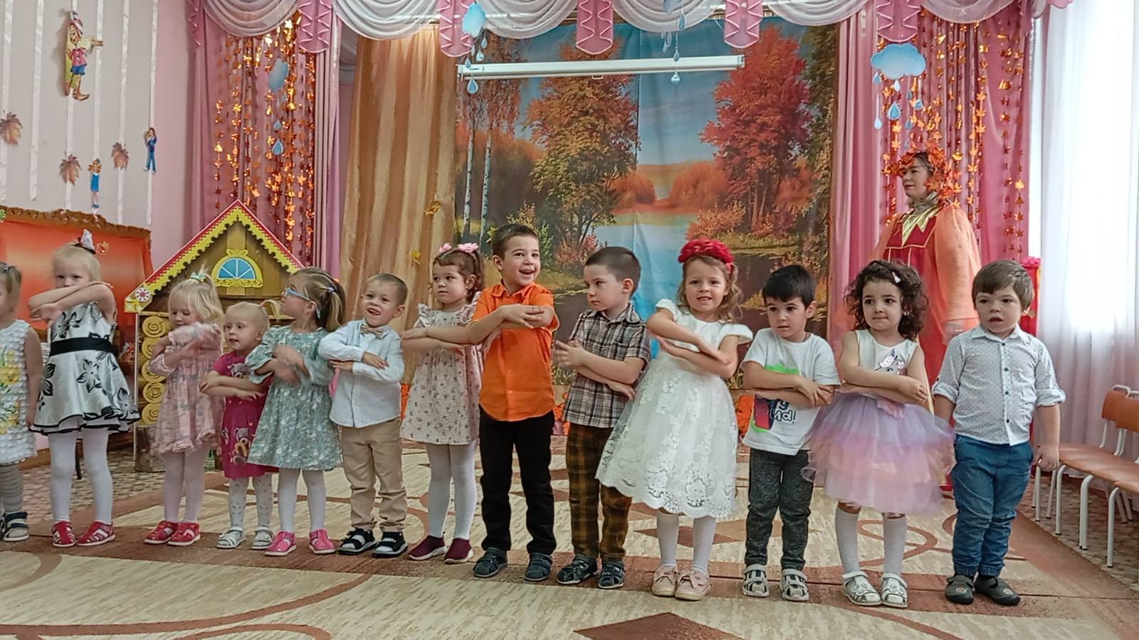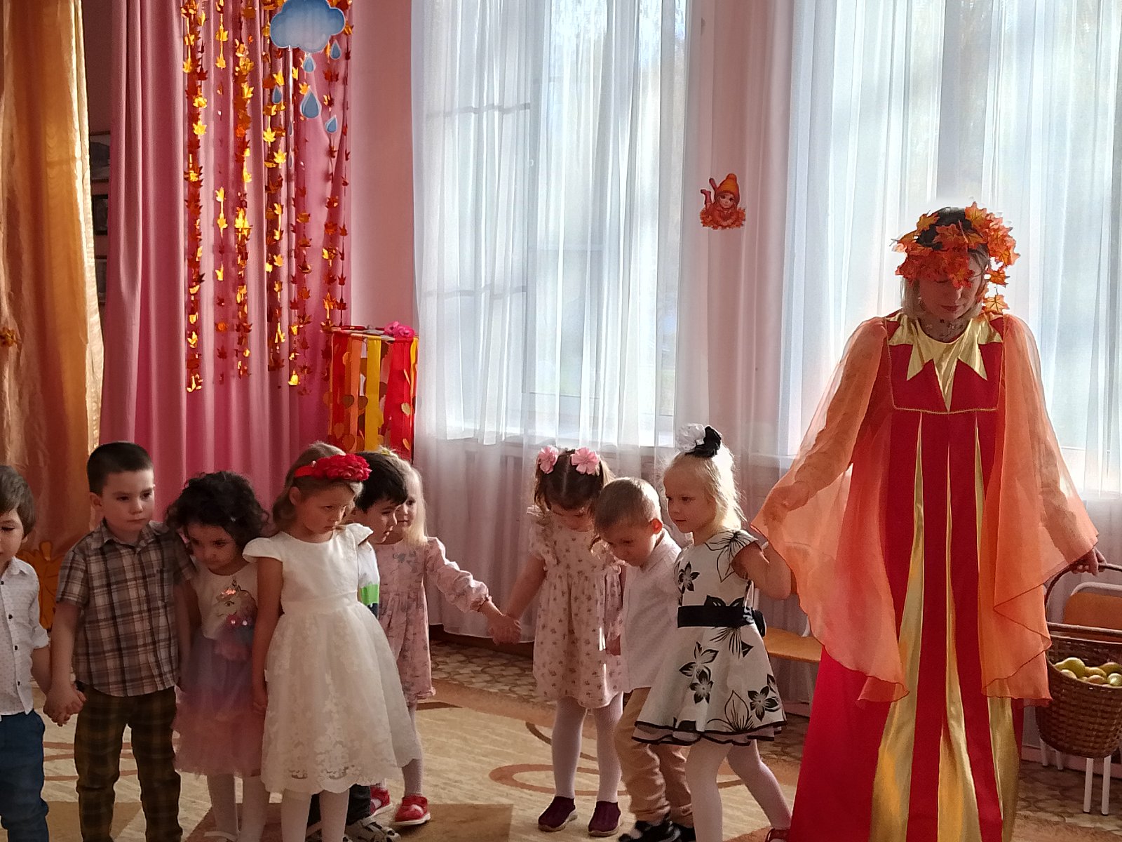 В группах "Теремок", воспитатель Ершова О.А., "Сказка", воспитатель Кузнецова Н.А, прошёл замечательный и яркий осенний праздник . В этот день у ребят побывала сердитая тучка, которую малыши взяли в гости к красавице осени. Забавные игры, овощные эстафеты, песенки об осенних листьях подняли настроение тучке, и она улетела, оставив ребятам ласковое солнышко.