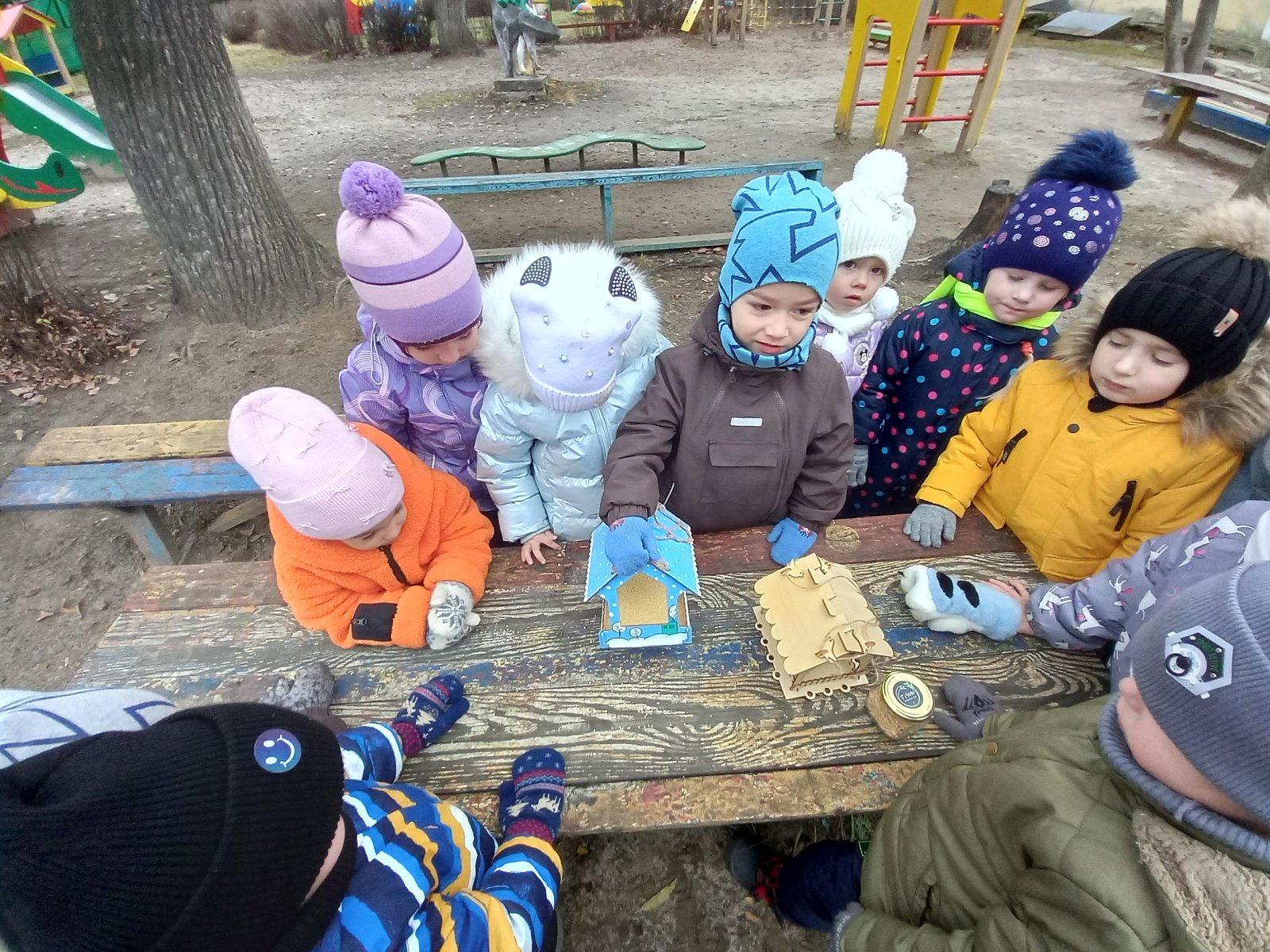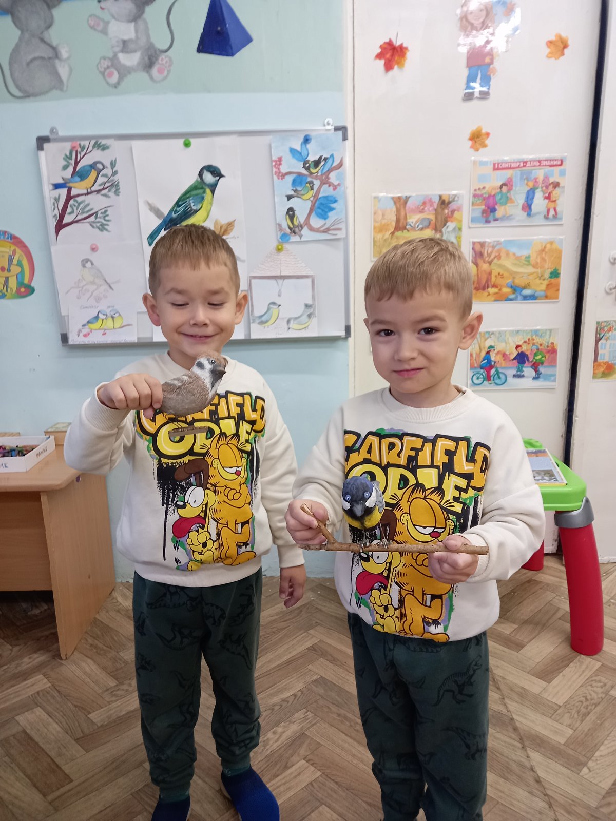 .12 ноября в группе " Сказка", педагог Кузнецова Н.А., отмечали Синичкин день. К ребятам в гости прилетела синичка Зинька. Вместе с ней в процессе образовательной деятельности ребята вспомнили название других зимующих птиц, сравнили их внешний вид и повадки, а так же повторили поговорки о птицах, познакомились с традициями и историей этого дня. Зинька рассказала, что в холодном лесу ей стало одиноко, и попросила о помощи. Ребята пожалели птичку и с воодушевлением слепили весёлых малышек- воробьишек. А на прогулке вместе с воспитателем ребятня развесили на участке кормушки, предварительно насыпав в них корм для птиц.