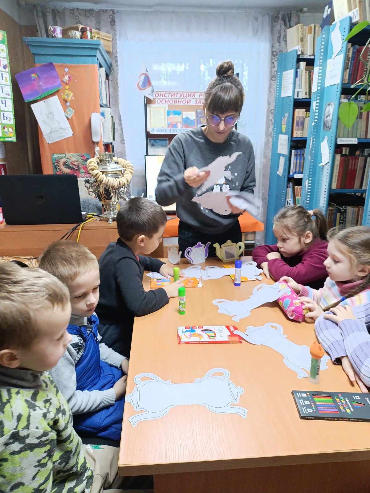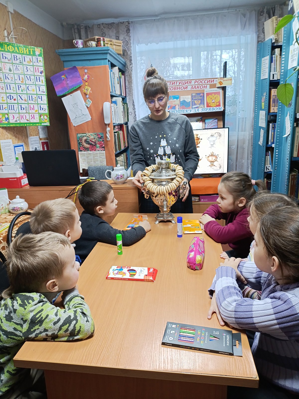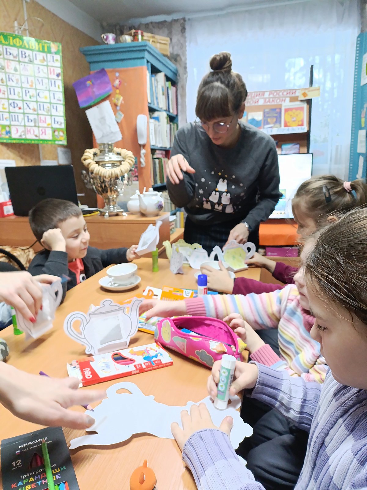 Ребята группы «Фантазёры», педагог Ботнарь Н.В., в рамках социального взаимодействия, побывали в гостях в городской детской библиотеке на мероприятии к международному дню чая. На мероприятии ребят познакомили с историей происхождения чая, местами его выращивания и сбора, с правилами хранения, рассказали о пути проникновения в Европу и в нашу страну, о пользе чаепития. Ребята дружно отвечали на вопросы викторины «Русский чай», приняли участие в конкурсе загадок, прослушали народные пословицы и поговорки о чае, просмотрели видеопрезентацию «Традиции русского чаепития», познакомились с профессией титестера и атрибутами русского чаепития.