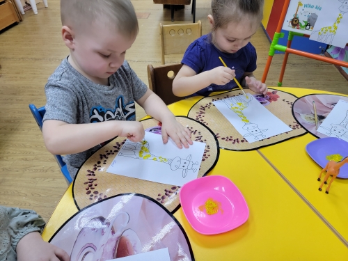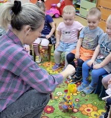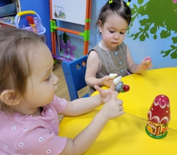 В ходе тематикой недели «Игры- Потешки», в младшей группе «Солнышко», педагог Костина Н.В., дети познакомились с русским народным фольклором- играми- потешками. В деятельности малыши поиграли с матрёшкой, развивали речь, дыхание с помощью потешек, мелкую моторику рук, играли с пальчиковым театром. Научили матрёшку играть в игру «У жирафа пятнышки везде» и подарили ей удивительных жирафов.