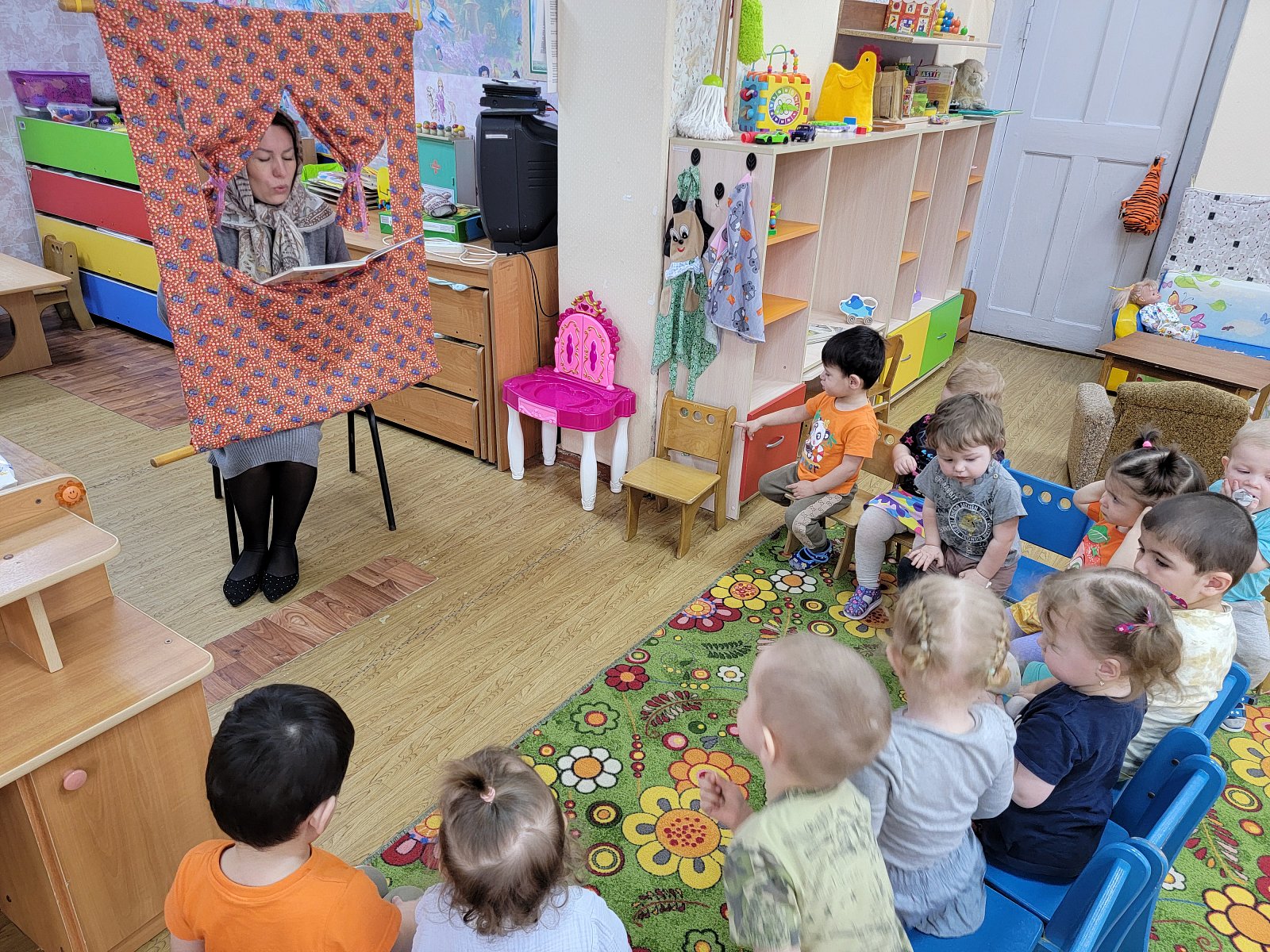 Какой ребёнок не любит театр, это всегда очень ярко, эмоционально, зрелищно. Вот и малыши группы «Солнышко», педагог Костина Н.В., решили погрузиться в этот сказочный мир. Установили декорации, надели маски и сразу превратились в сказочных персонажей! Малыши разыграли элементарные эпизоды из фольклорных сказок, а затем изобразили самого яркого героя-Колобка.