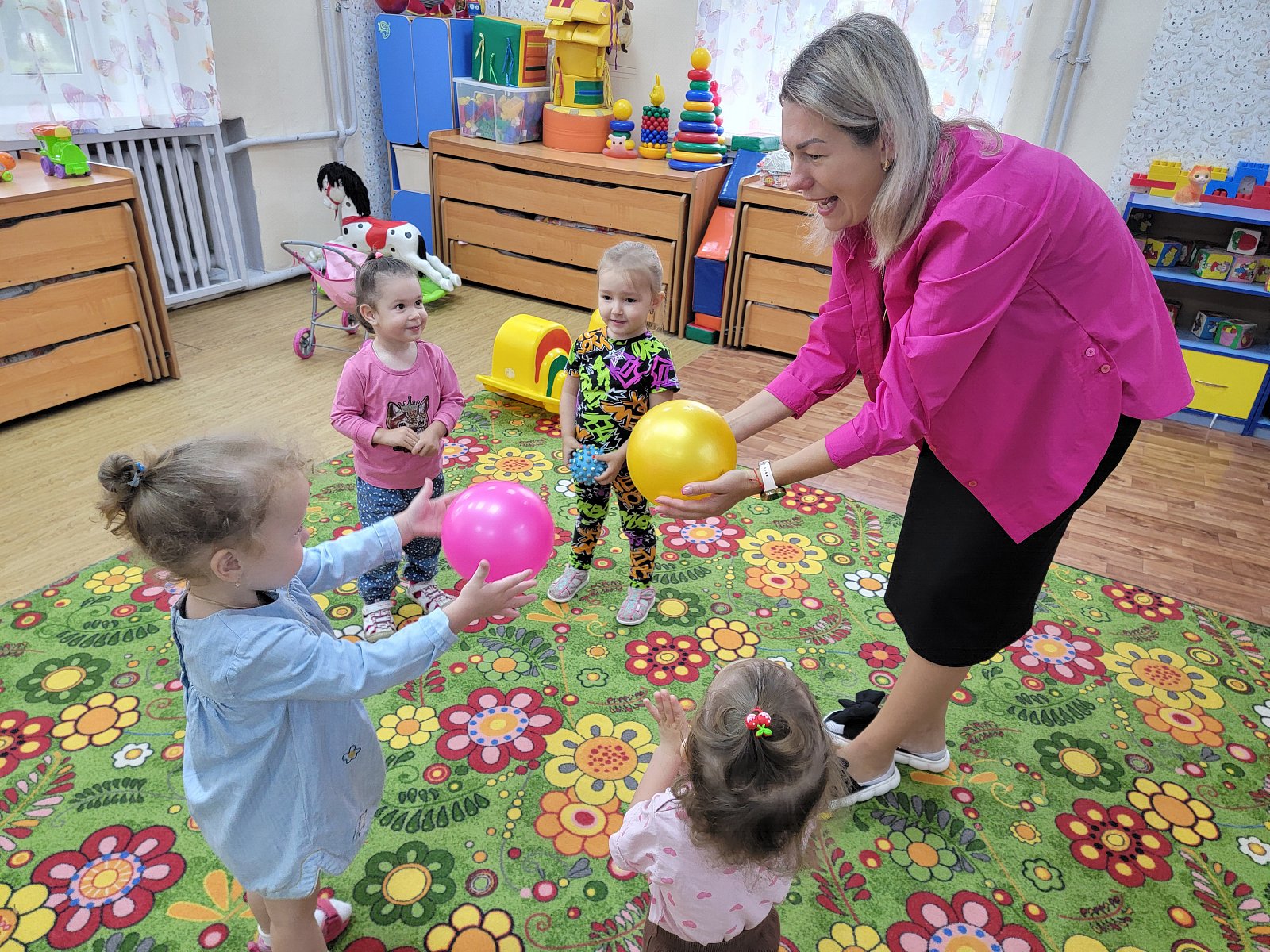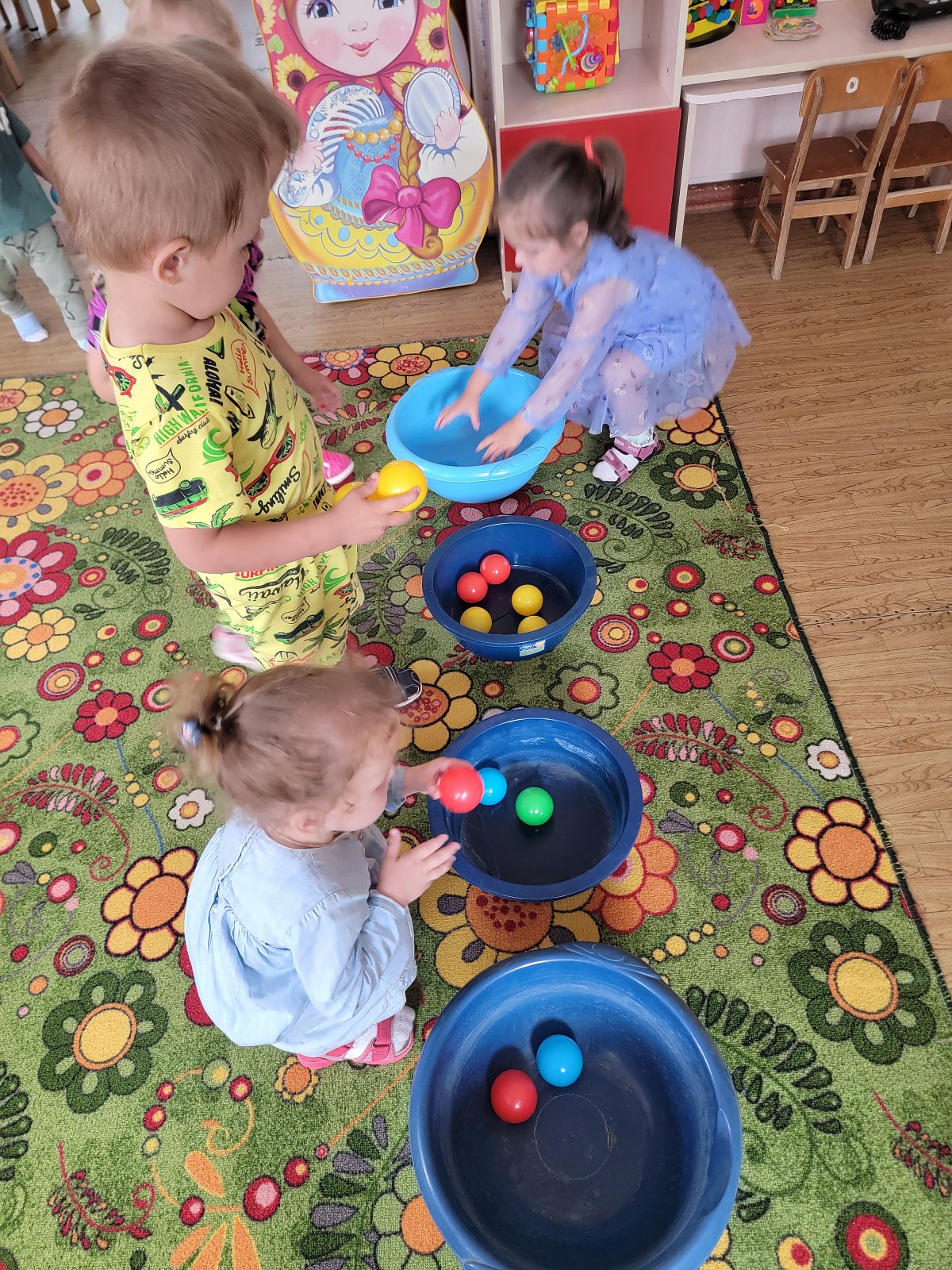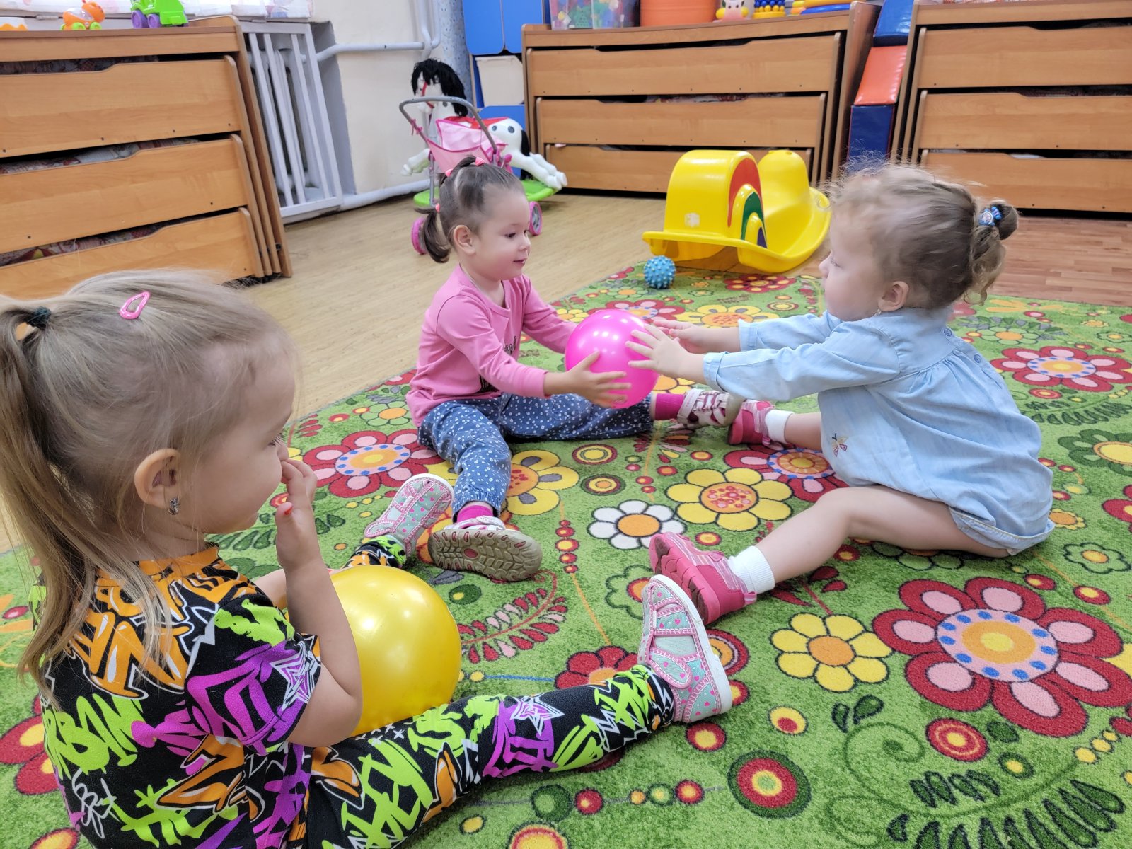 В группе раннего возраста «Солнышко», педагог Костина Н.В., прошел "День веселого мяча" посвященный забавам и играм с мячом. Мяч – одна из первых и любимых игрушек каждого ребенка в детстве. Играя в мяч, невольно вспоминаются веселые строчки из стихотворения Самуила Яковлевича Маршака "Мой весёлый звонкий мяч…". Игры и упражнения с мячом занимают особенное место разнообразия детских игр, они оказывают положительное влияние на здоровье детей, развивают ориентировку в пространстве, ловкость, координацию, быстроту реакции.