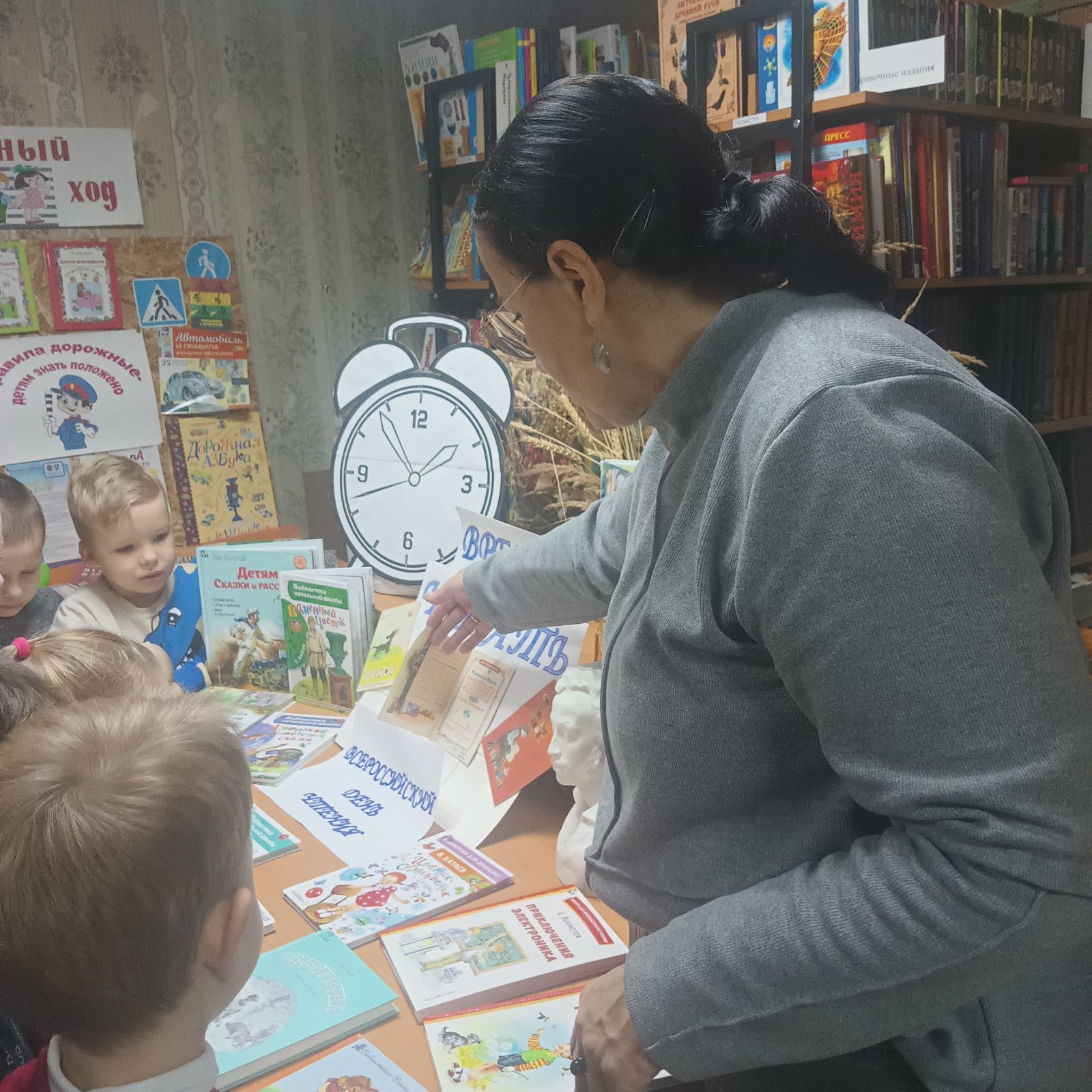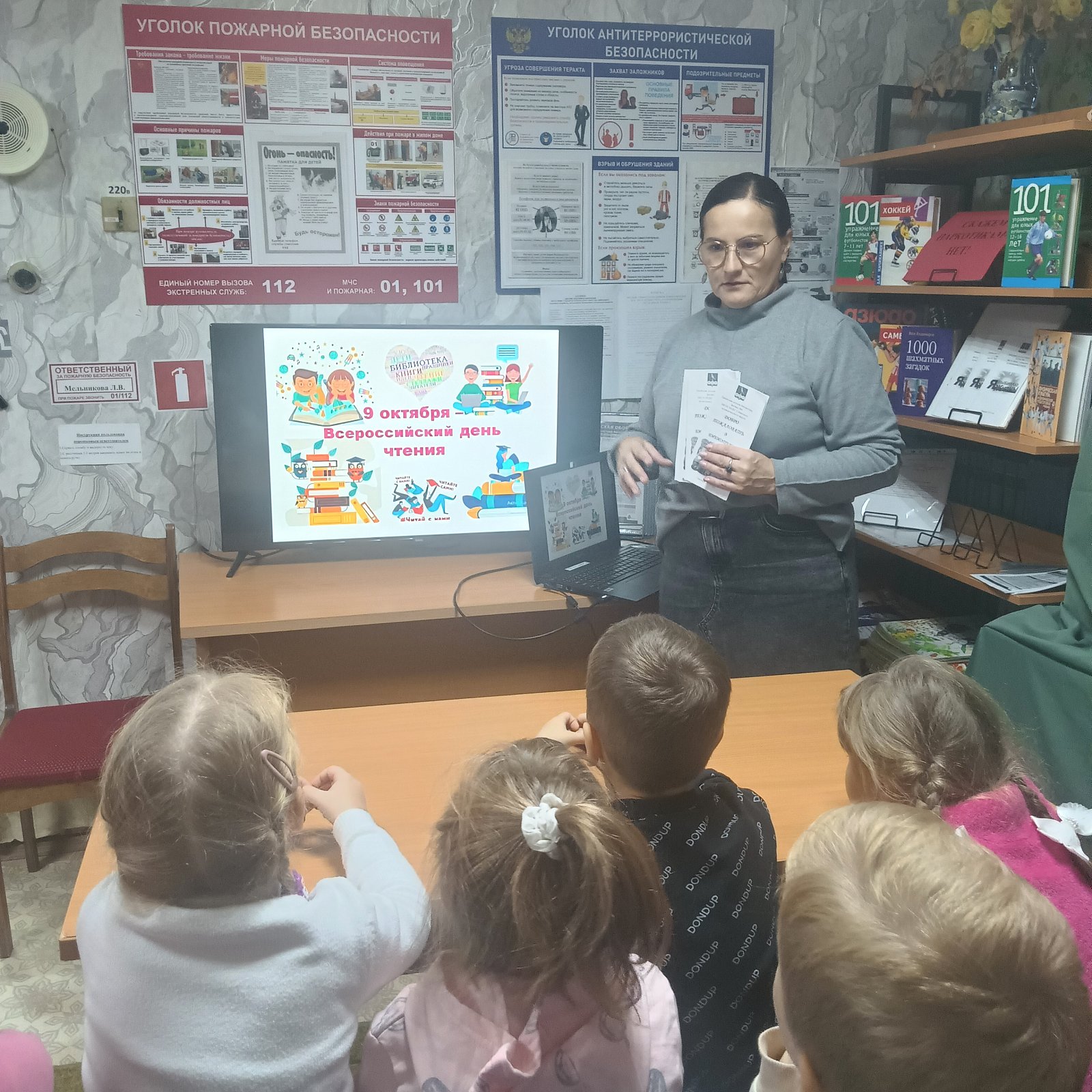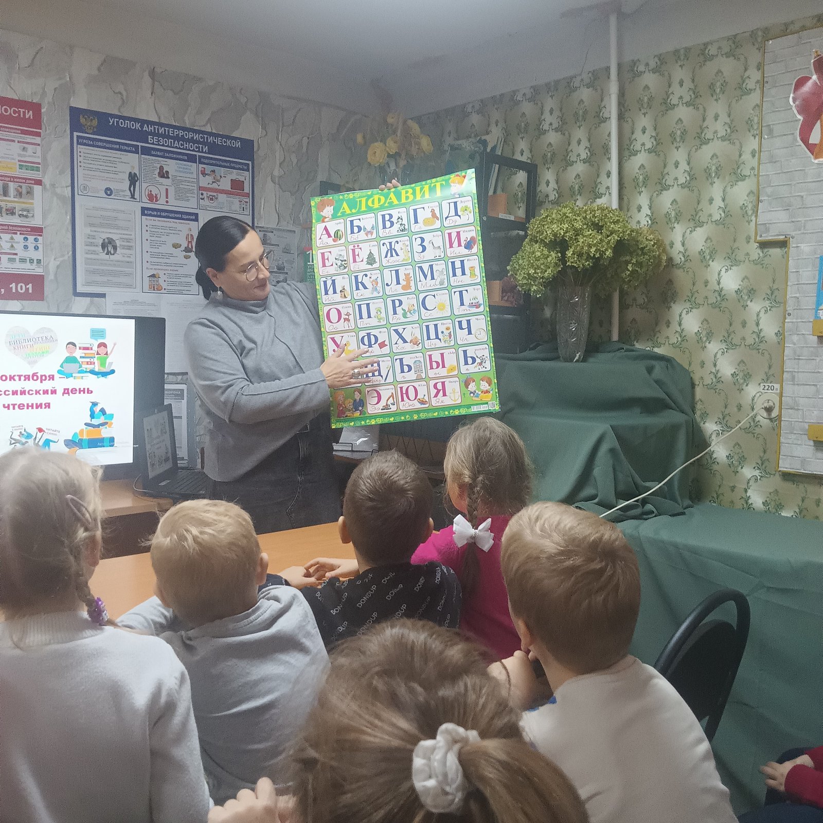 Очень важно приобщить детей к книжной культуре, расширять знания дошкольников о книгах, воспитывать любознательность, грамотного человека. Дети группы «Ягодка» в рамках празднования Дня чтения посетили городскую детскую библиотеку. Как всегда ребят радушно встретили «феи царства книг» – библиотекари, которые провели детей в удивительный и интересный мир книг. Дошколята посмотрели увлекательную презентацию «Удивительный книжный мир», отвечали на вопросы , рассматривали книги, играли в интерактивные игры.