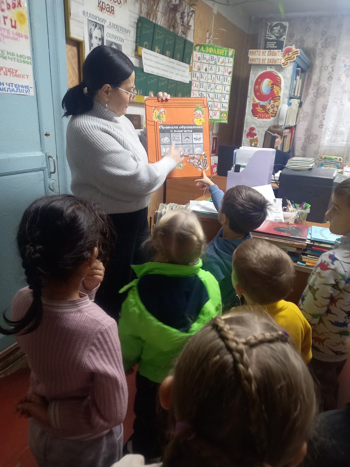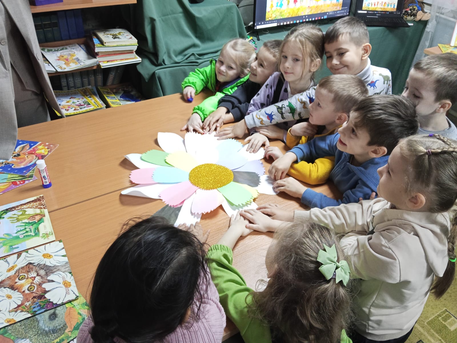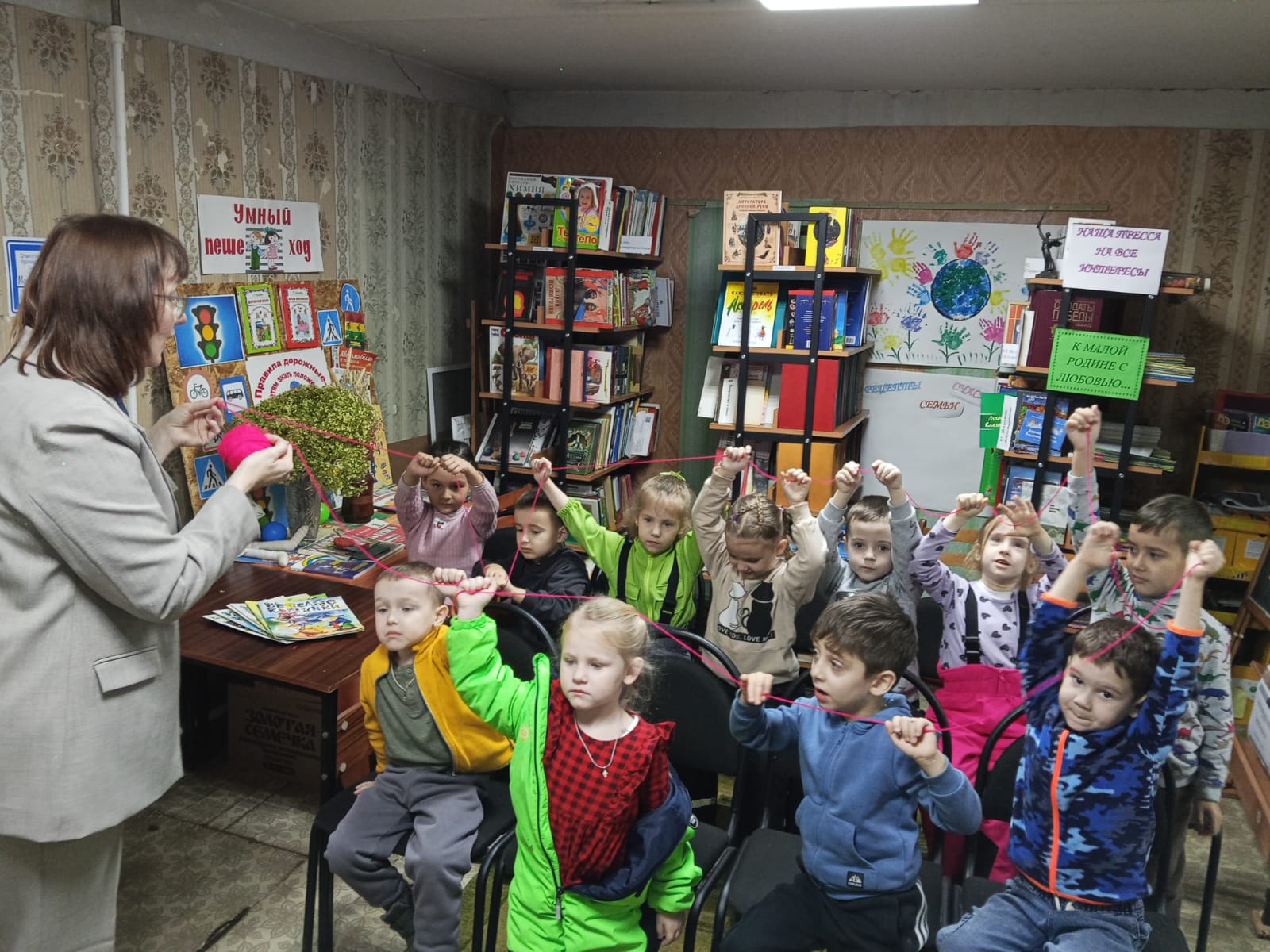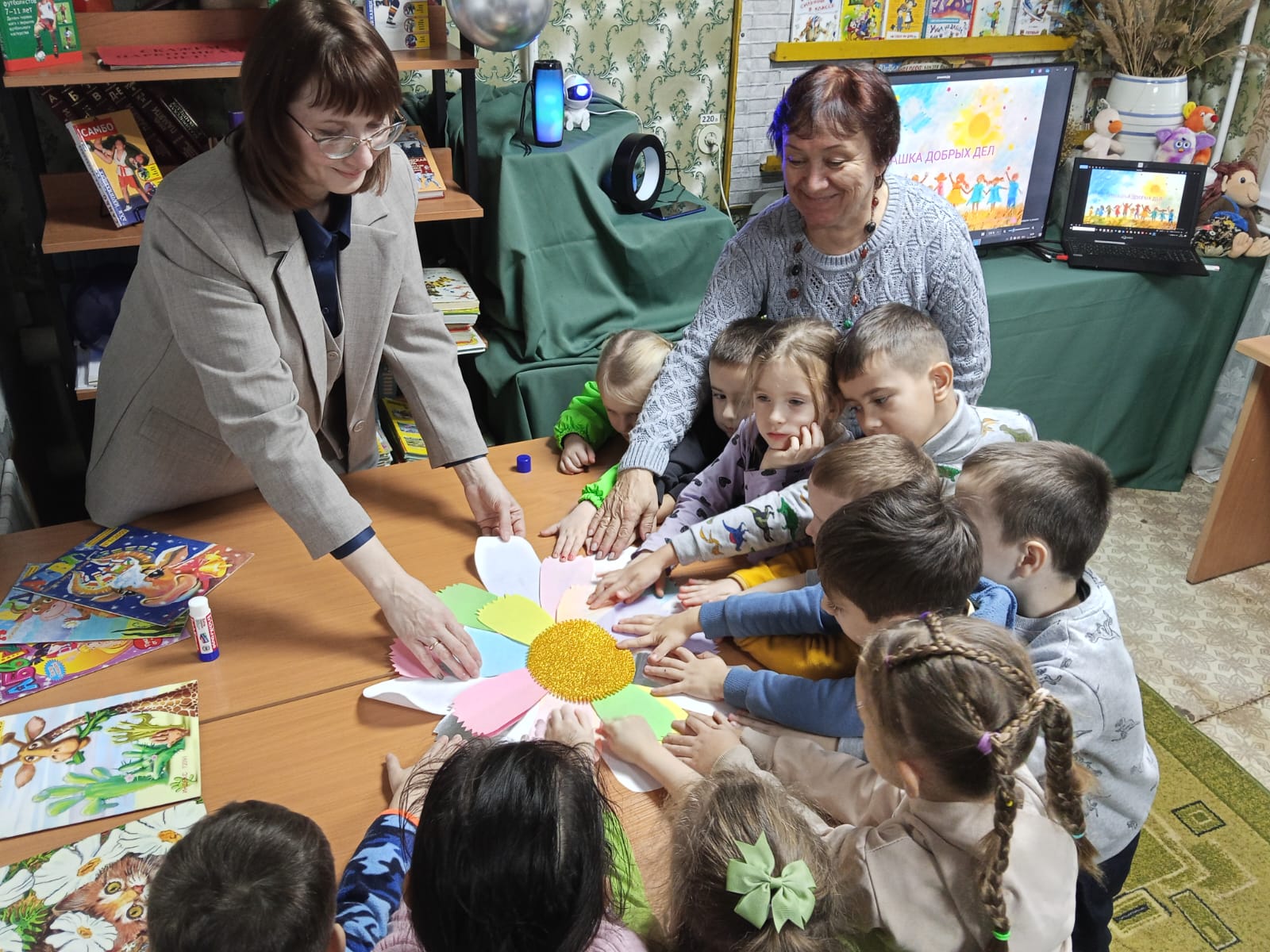 В День доброты и вежливости в группе " Сказка", педагог Кузнецова Н.А., состоялось совместное с детской городской библиотекой мероприятие. Дошколята увидели " книжкин дом", познакомились с трудом библиотекаря и приняли участие в празднике доброты и вежливости. Они слушали песни по теме, покормили и обогрели щенка, сделали " Ромашку доброты" и связали всех присутствующих нитью добра.