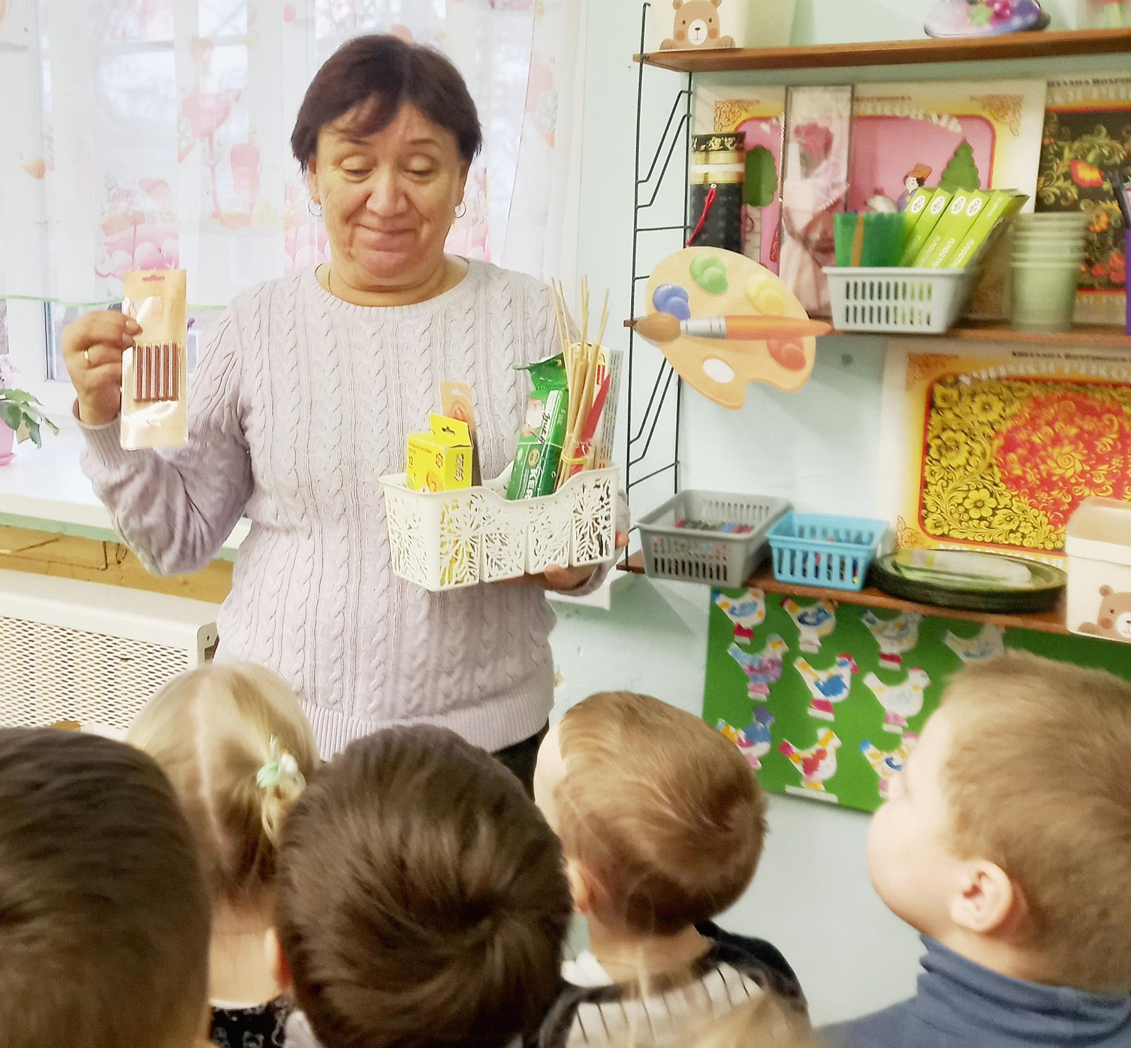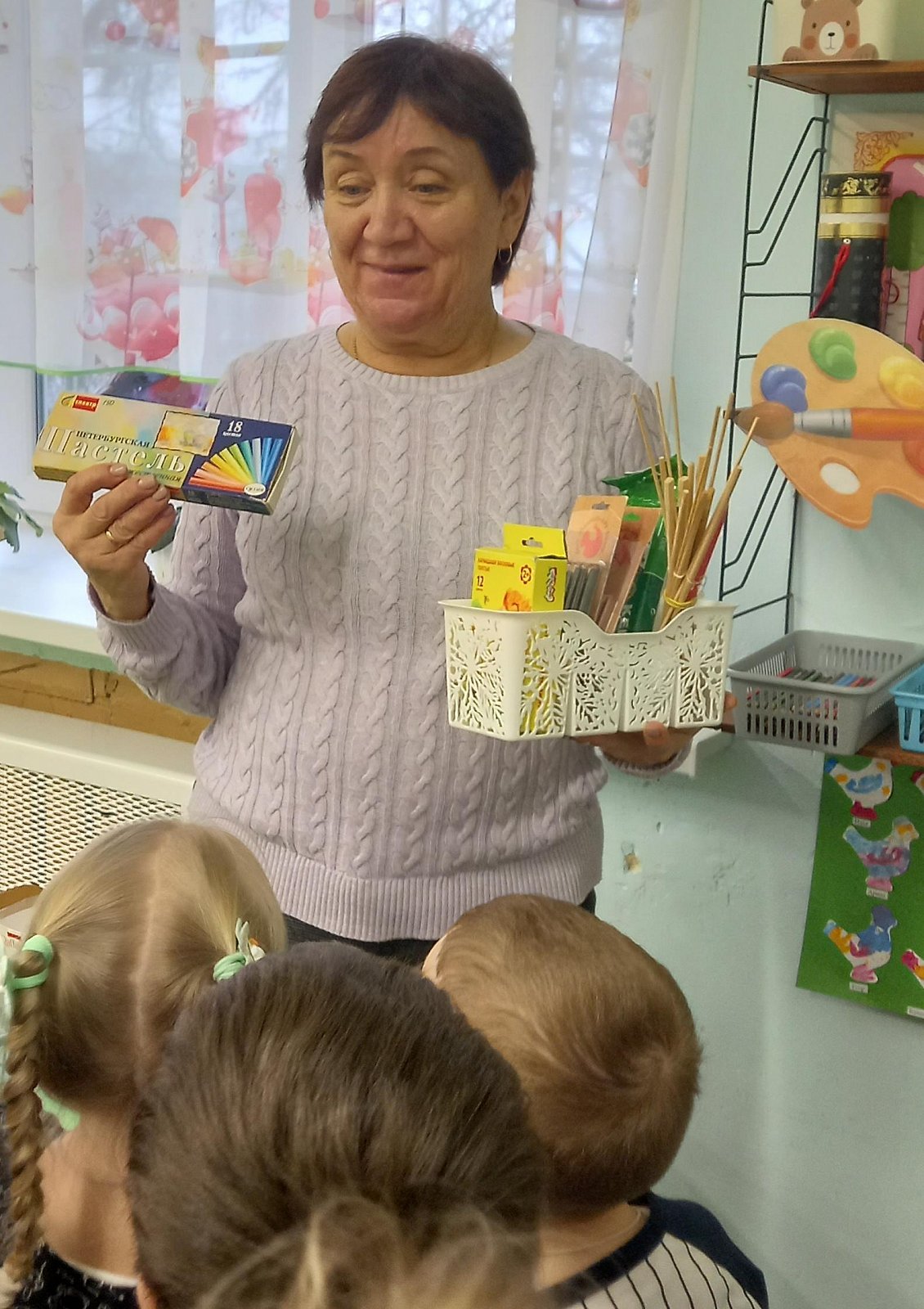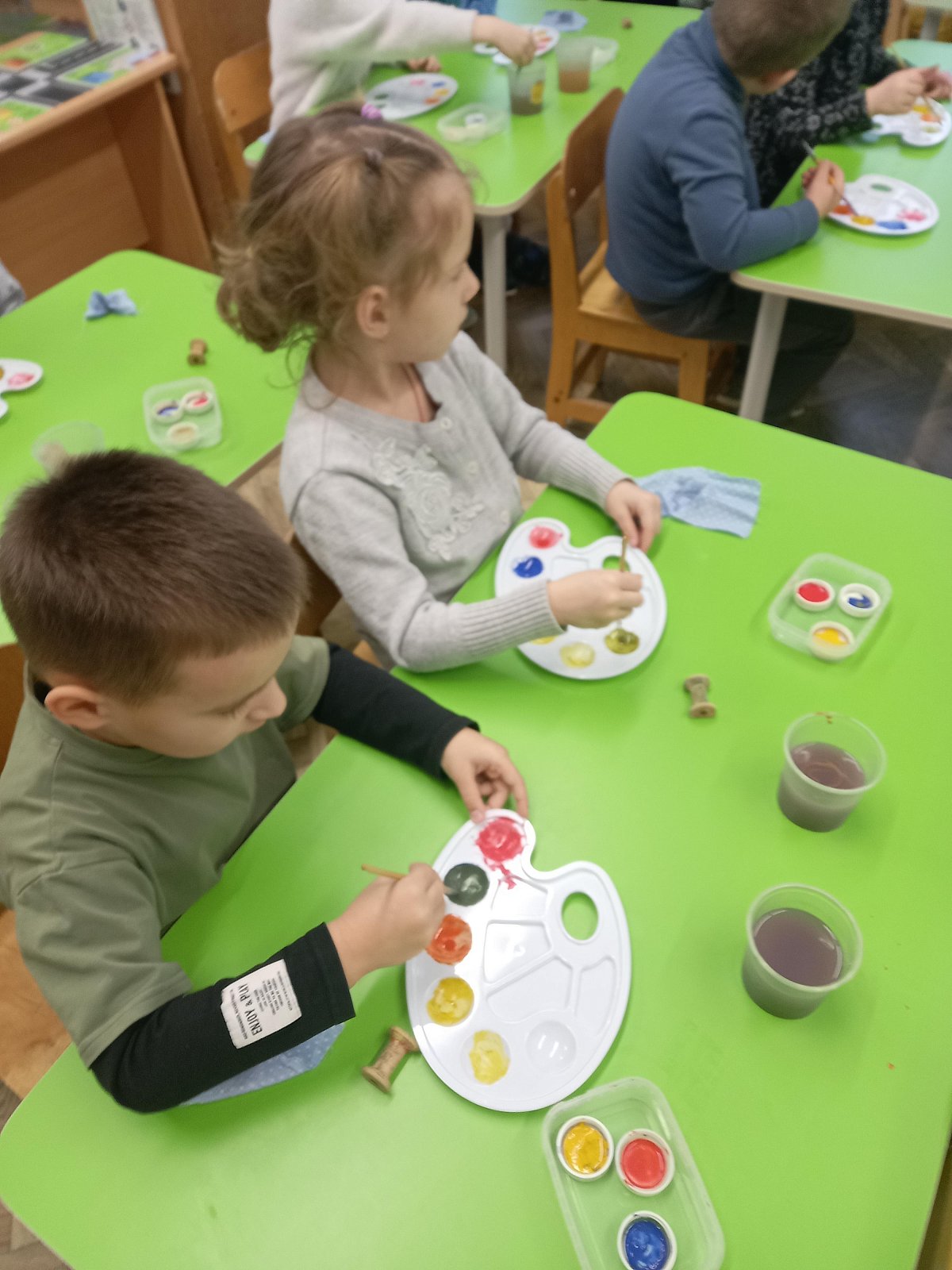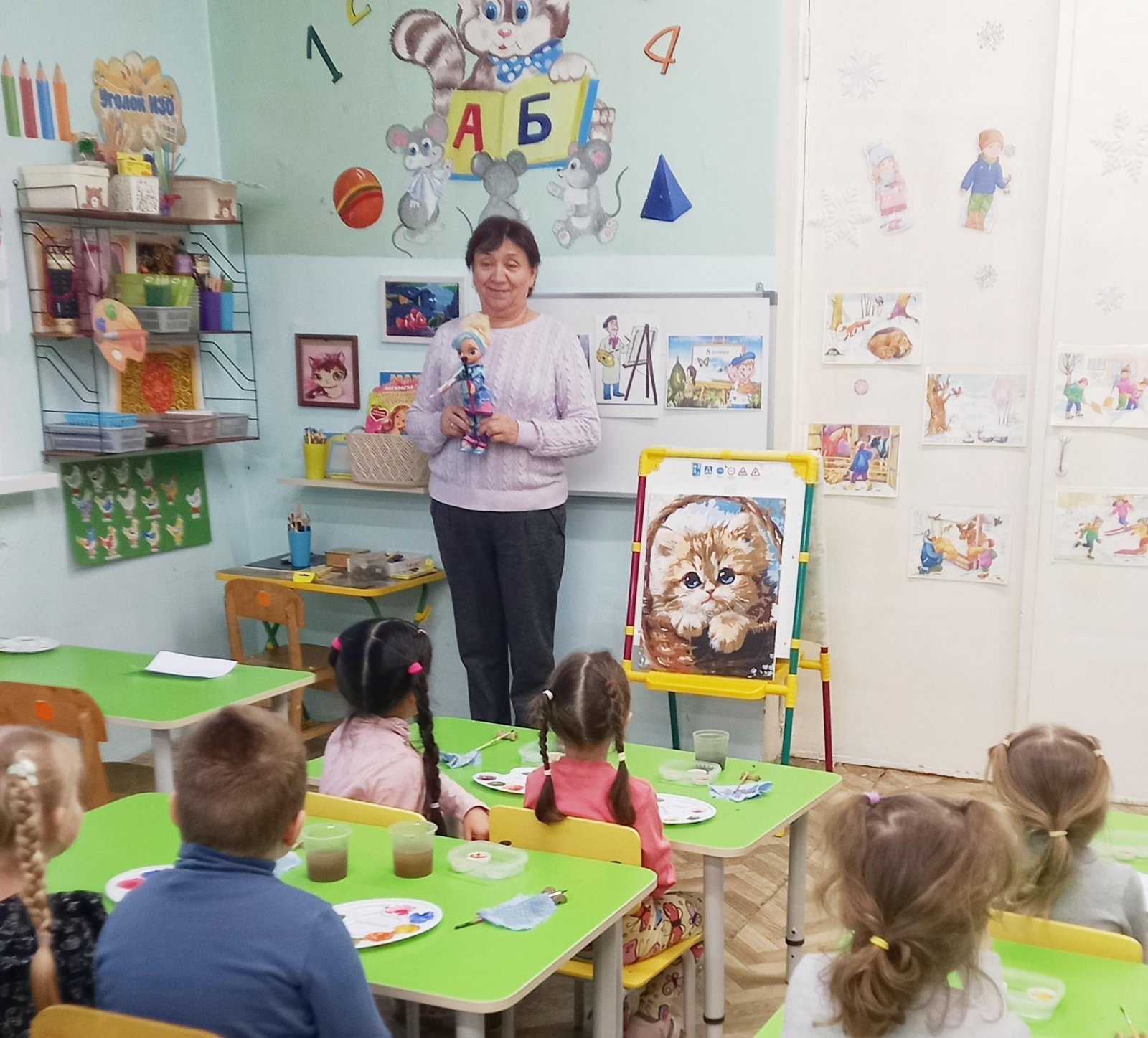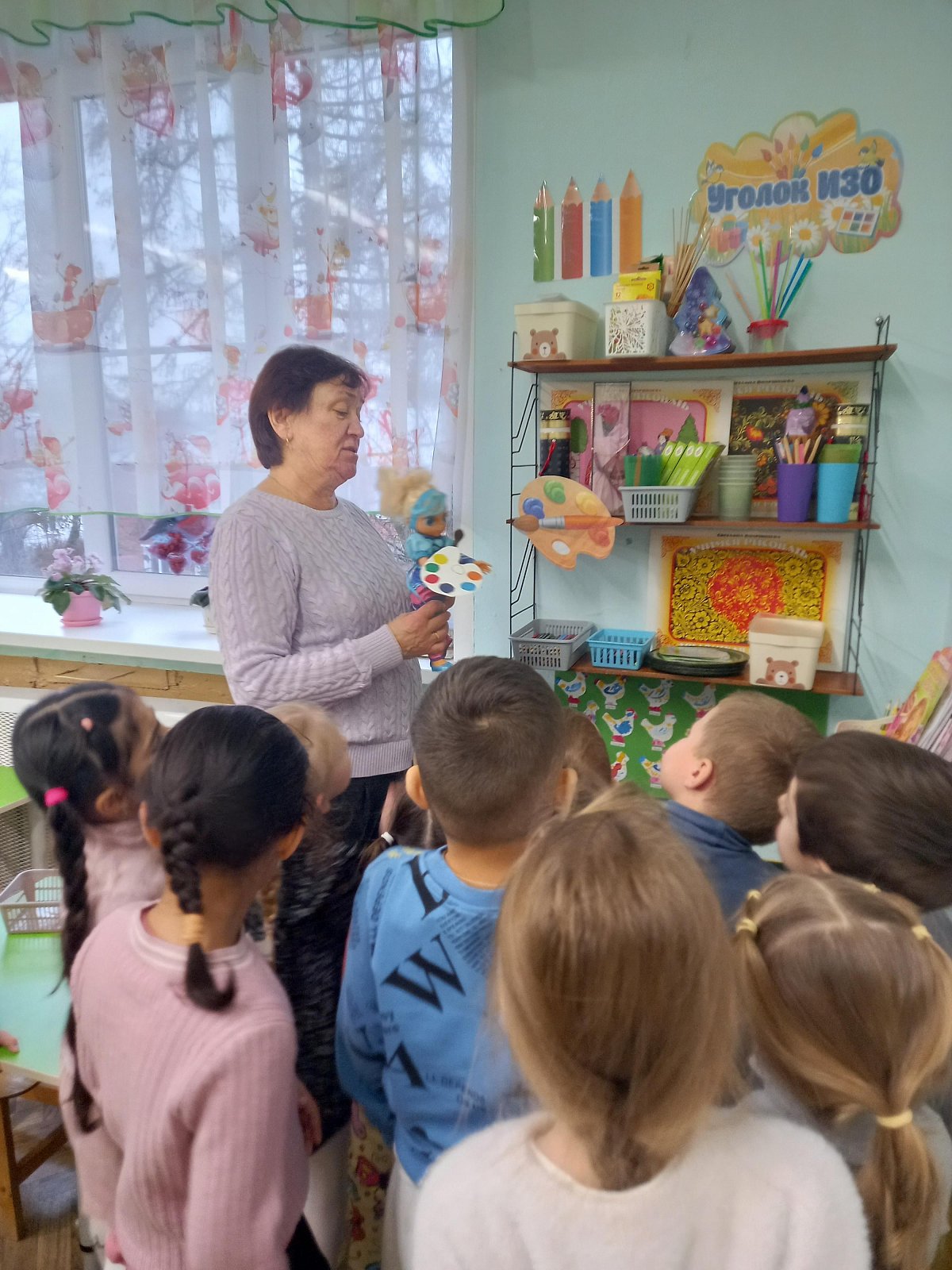 В группе «Сказка», педагог Кузнецова Н.А., отметили Всемирный День художника. В гости к детям пришла кукла-художница Анна. Она принесла палитру и кисть и научила ребят смешивать краски на палитре. Ребята с удовольствием этим занялись. Также они рассмотрели картину «Котенок», которую нарисовала и подарила бабушка Артёма Трофимова. Ребята назвали материалы и инструменты в уголке ИЗО, которыми пользуется художник.