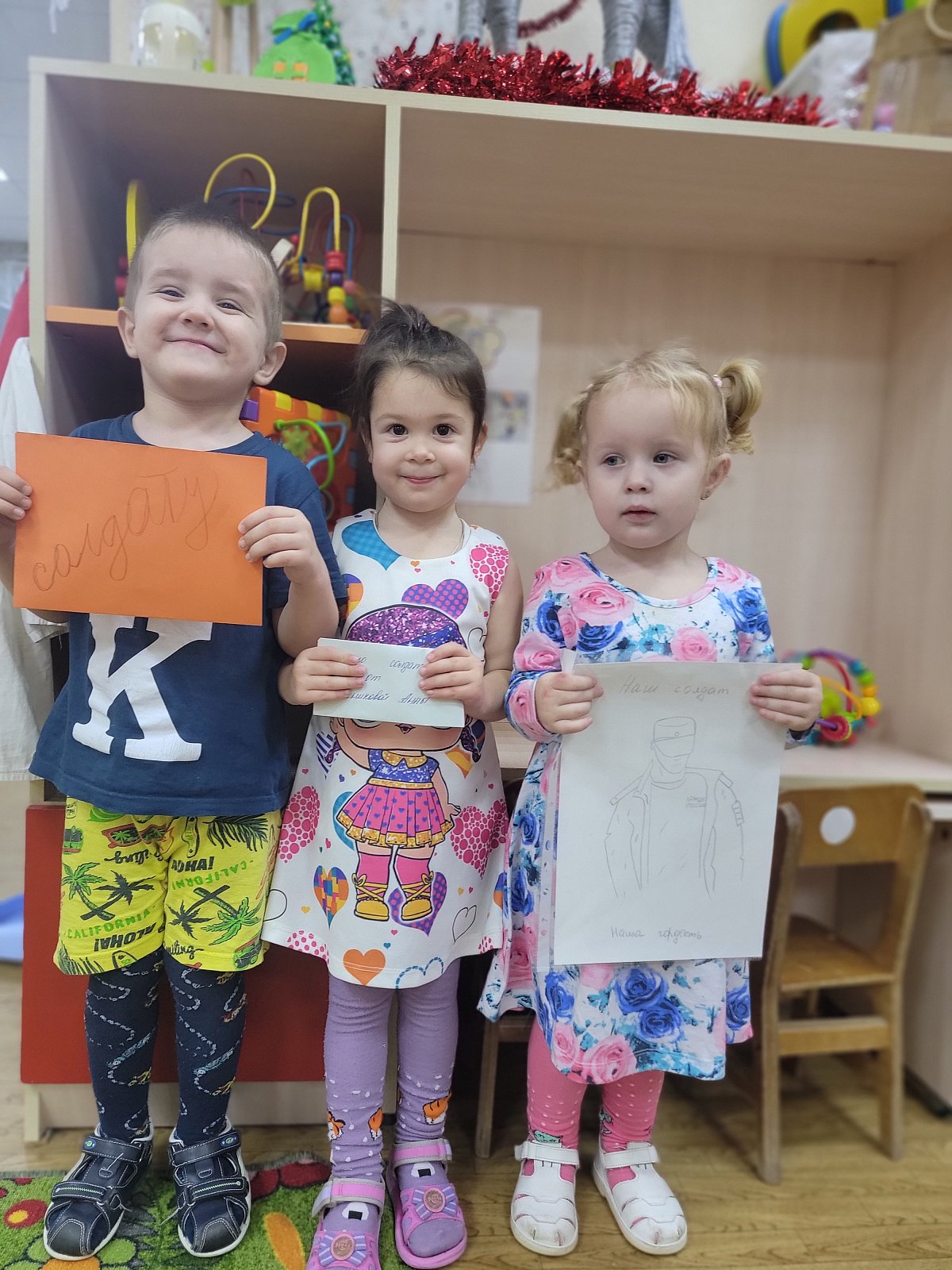 Дошколята группы "Теремок", педагог Ершова О.А., "Фантазёры", педагог Ботнарь Н.В., "Солнышко", педагог Костина Н.В., приняли участие в акции "Новогоднее письмо солдату". Ребята в своих рисунках выразили нашим воинам пожелания здоровья, хорошего новогоднего настроения, скорейшего возвращения домой. .