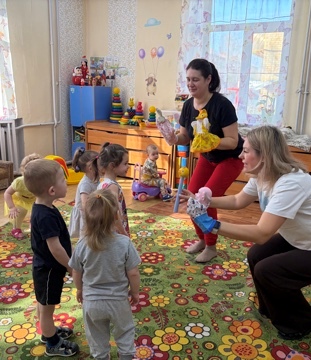 Группа «Солнышко», педагог Костина Н.В., встречала добрых людей в лице родителей. Папа Алёши Павлова помог в ремонте прогулочной веранды, а мама Анны Пасечниковой пришла к малышкам со сказкой колобок, поиграла с ними и принесла для них угощение. Детки были очень рады.