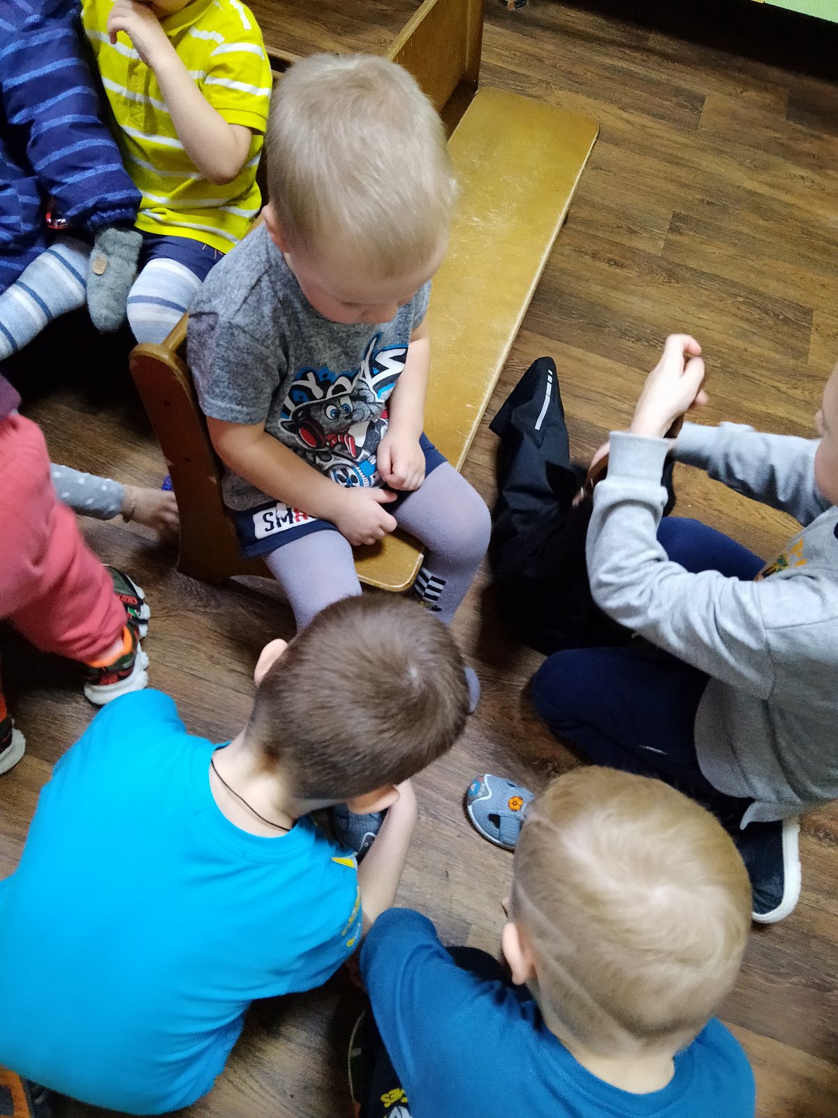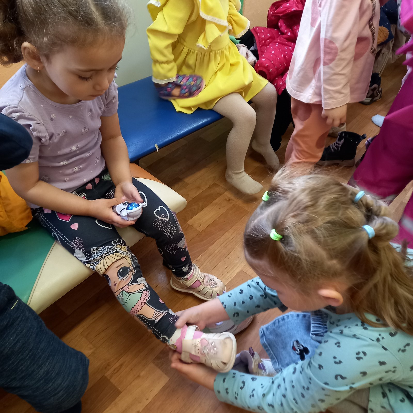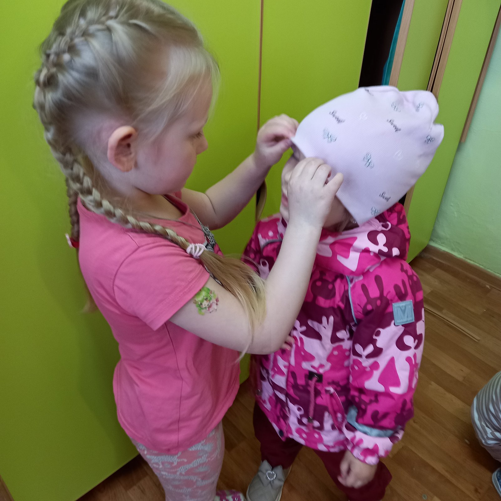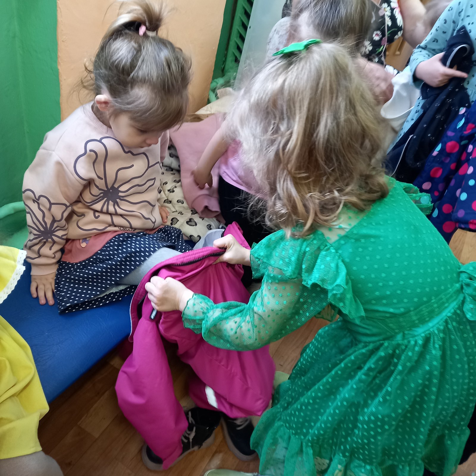 В группе "Сказка", педагог Кузнецова Н.А., ребята организовали добрую экскурсию для малышей группы "Ромашка" по выставке "Пасхальные мотивы", где рассказали и показали свои работы. Юные доброхоты продолжили свою деятельность с малышами и помогли им одеться на прогулку, делая это спокойно и ответственно.