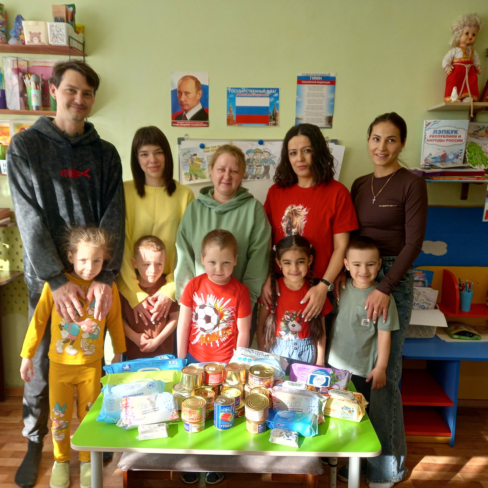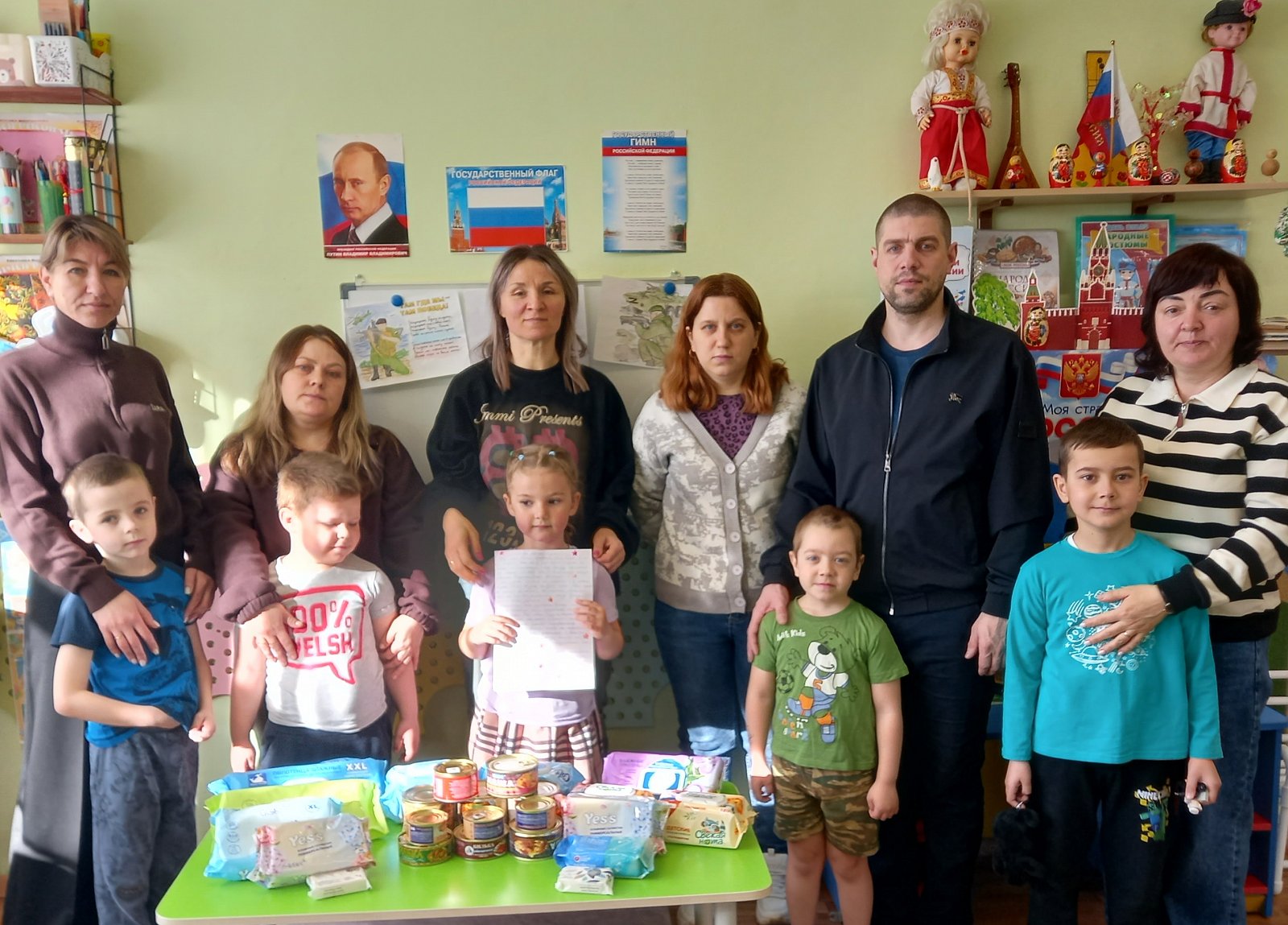 Родители и дети группы «Сказка», педагог Кузнецова Н.А., совместно с сотрудниками городской Детской библиотеки приняли участие в добровольческой акции "Весенняя неделя добра". Была собрана «Посылка солдату» (в помощь бойцам СВО). В неё вошли предметы гигиены, продукты питания. А Ксюша Серенкова написала с помощью мамы письмо солдату, ведь для бойцов очень важно знать, что их помнят и ждут домой.