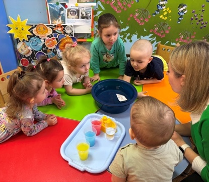 В группе «Солнышко», педагог Костина Н.В., подошел к концу краткосрочный познавательно исследовательский проект «Вода и ее друзья». Ребята узнали, что вода бесцветная, но её можно окрасить в разные цвета, она может быть холодная, теплая. Поиграли в водяную мельницу, погружали предметы легкие и тяжелые, запускали кораблик и развивали дыхательную систему, развивали словарный запас.