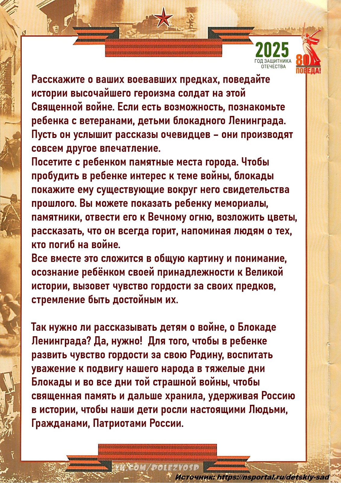 Расскажите своим детям о блокаде Ленинграда и подвиге нашего народа, растим патриотов вместе!